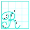 Lưu ý: Lưng của nét cong trái tiếp xúc với ĐK dọc 1. Lưng của nét cong phải (trên nét thắt) tiếp xúc với ĐK dọc 3. Nét thắt nằm phía trên ĐK ngang 2 và cắt ngang nét móc ngược trái.