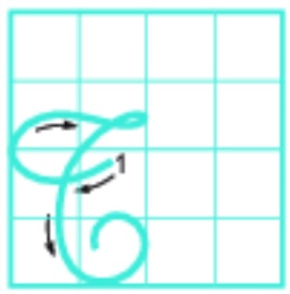 Cách viết: Đặt bút giữa ĐK dọc 2 và 3, phía dưới ĐK ngang 3 một li, viết nét cong trái nhỏ kết hợp viết nét thắt rồi viết tiếp nét cong trái lớn liền mạch với nét cong phải và dừng bút cách bên phải ĐK dọc 2 một li, dưới ĐK ngang 2.