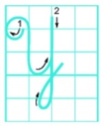 + Lia bút lên theo ĐK dọc 3, viết nét khuyết dưới và dừng bút trước ĐK dọc 4, giữa ĐK ngang 1 và 2.