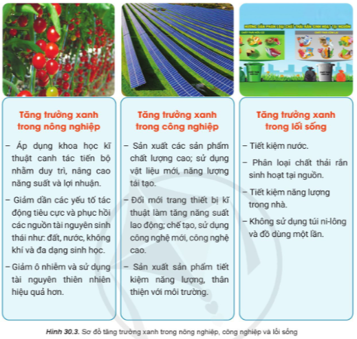 Đọc thông tin trong mục “Tăng trưởng xanh” và quan sát hình 30.2 và 30.3.