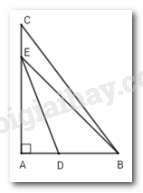 Ta có: Góc EDB là góc ngoài tại đỉnh D của tam giác ADE nên \(\widehat {EDB} > \widehat {DAE} = 90^\circ  \Rightarrow \widehat {EDB}\) là góc tù.