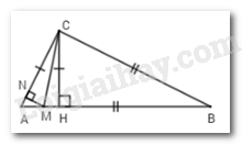 Lại có: $\left\{ \begin{array}{l}\widehat {BCM} + \widehat {MCA} = \widehat {ACB} = {90^0}\left( {gt} \right)\\\widehat {CMH} + \widehat {MCH} = {90^0}\left( {gt} \right)\end{array} \right.\left( 2 \right)$