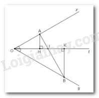 Gọi \(I\) là giao của \(Ot\) và \(AB\). Kẻ \(AH \bot Ot, BK \bot Ot\)