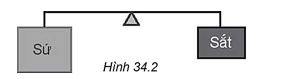 Trong thí nghiệm vẽ ở Hình 34.2, ban đầu cân thăng bằng. Sau đó nhúng đồng thời cả hai vật chìm trong nước ở hai bình khác nhau. Phương án nào sau đây là đúng?