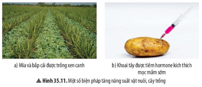 11. Quan sát Hình 35.12 và 35.13, hãy cho biết một số ứng dụng được sử dụng nhằm nâng cao năng suất vật nuôi.