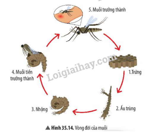 12. Quan sát Hình 35.14, giai đoạn muỗi gây hại cho con người là giai đoạn muỗi trưởng thành.