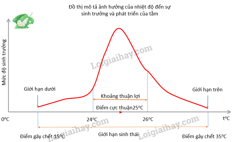 1. Đồ thị thể hiện sự phụ thuộc sinh trưởng của tằm vào nhiệt độ: