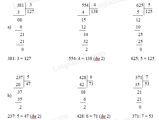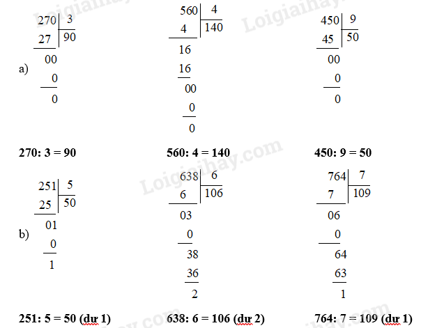 Thực hiện phép chia các số lần lượt từ trái sang phải.