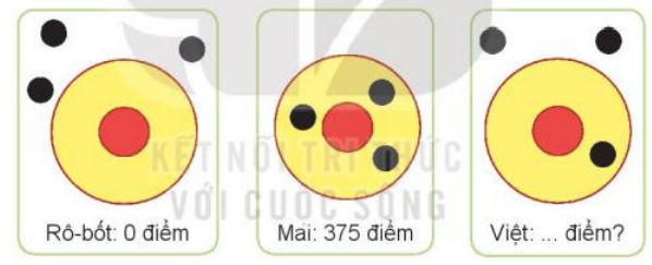 Rô-bốt, Mai và Việt lần lượt tung 3 quân cờ của mình vào một tấm bảng. Kết quả tung và số điểm của mỗi bạn nhận được như sau: