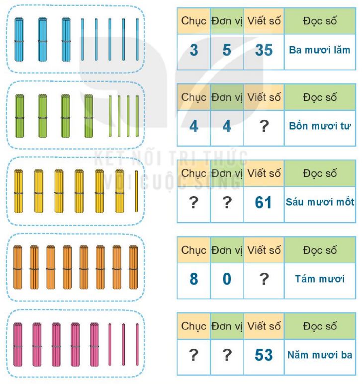 Lấy các số đã cho để ghép thành các số có hai chữ số.