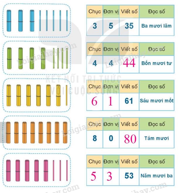 Phân tích số đã cho thành số chục và số đơn vị.