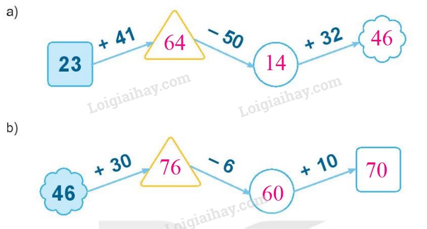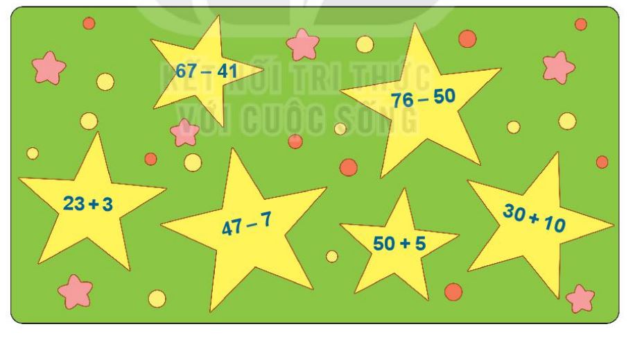 b) Những ngôi sao khi phép tính có kết quả lớn hơn 26 là: 47 – 7; 50 + 5; 30 + 10