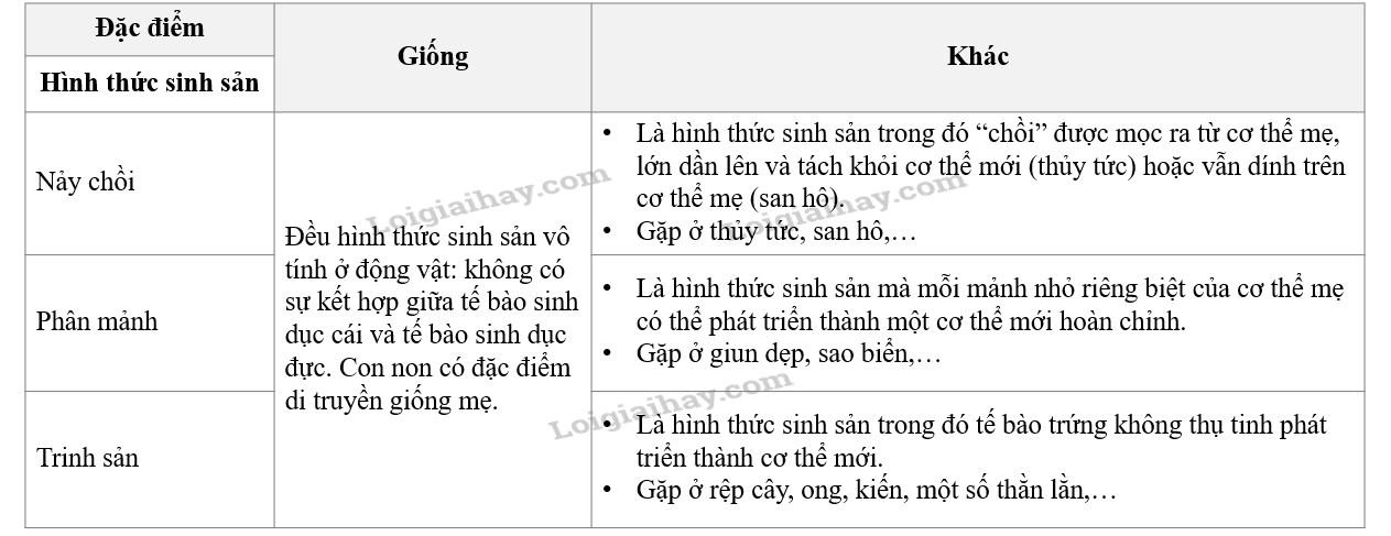Hiểu rõ được sinh sản vô tính ở sinh vật và phân biệt được với tái sinh ở động vật