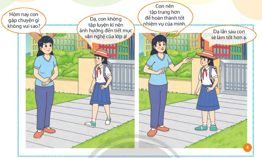 – Bức tranh thể hiện chưa giữ chữ tín: Tranh 4 vì bạn nữ đã không tập luyện kĩ, không hoàn thành tốt nhiệm vụ được giao.