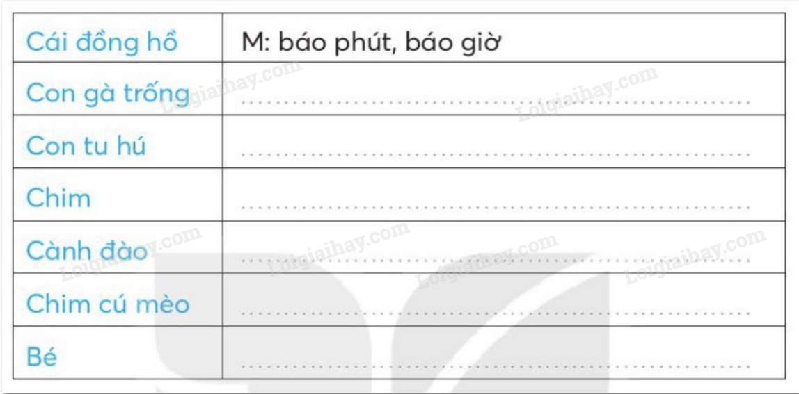Điền vào chỗ trống những từ chỉ hoạt động của mỗi người, mỗi vật sau theo mẫu.