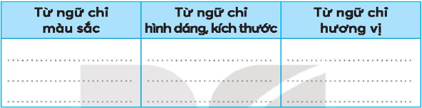 – Từ ngữ chỉ hương vị: thơm ngát.