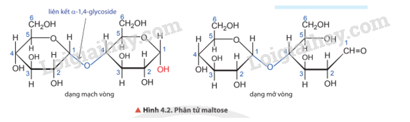 Maltose được tạo bởi hai đơn vị glucose, liên kết với nhau qua liên kết a-1,4-glycoside.