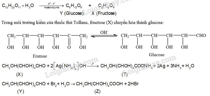 Glucose phản ứng với nước bromine, fructose không phản ứng với nước bromine nên Y là glucose.