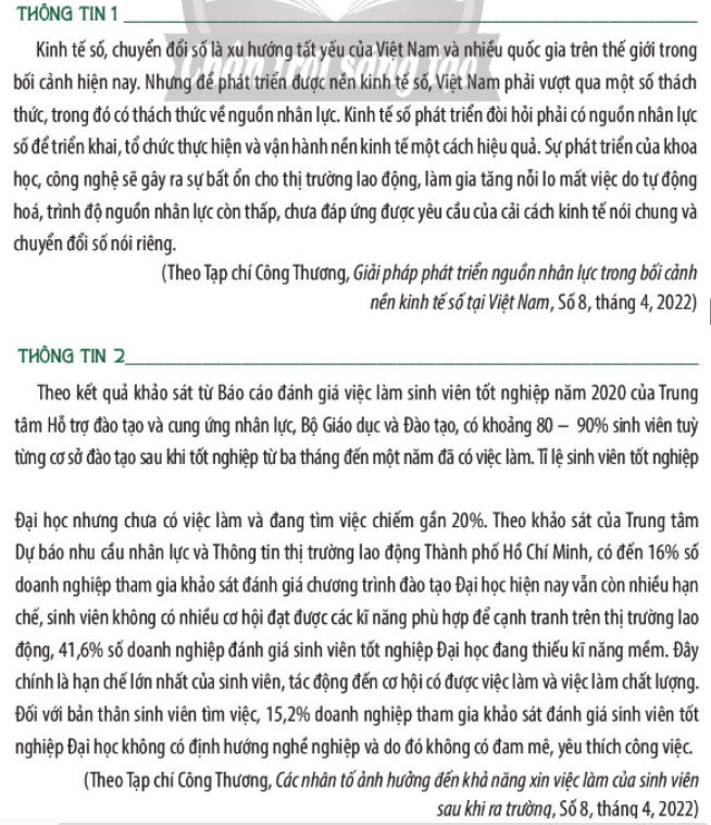+ Thông tin 1: Cơ cấu nền kinh tế có sự chuyển dịch theo hướng phát triển nền kinh tế số, nên đặt ra những yêu cầu, đòi hỏi cao về chất lượng nguồn lao động.