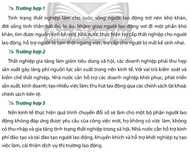 – Đọc các trường hợp, thông tin và chỉ ra những chính sách Nhà nước thực hiện để kiểm soát và kiềm chế thất nghiệp.