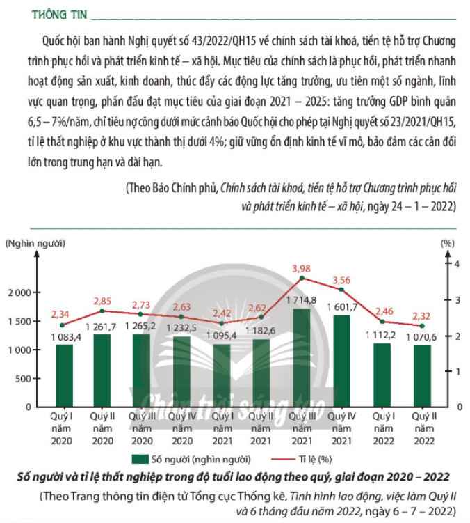 – Từ biểu đồ trên, em có nhận xét gì về sự biến động số người và tỉ lệ thất nghiệp? Qua đó, em đánh giá như thế nào về kết quả kiểm soát và kiềm chế thất nghiệp của Nhà nước?
