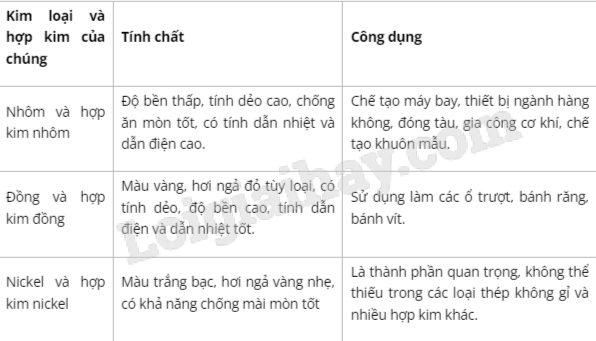 Các công dụng của kim loại và hợp kim trong sản xuất và đời sống:
