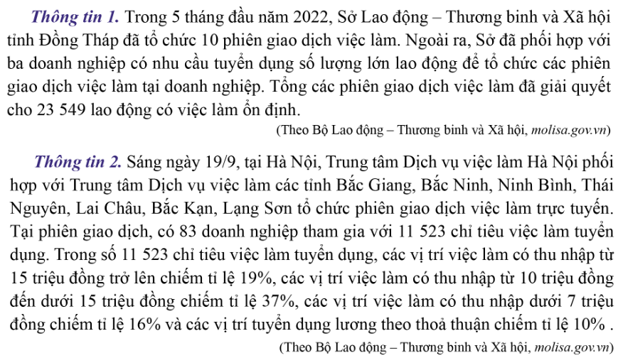 b. Đọc thông tin 2 và nêu được vai trò của thông tin thị trường lao động, dịch vụ việc làm trong việc gắn kết thị trường việc làm với thị trường lao động