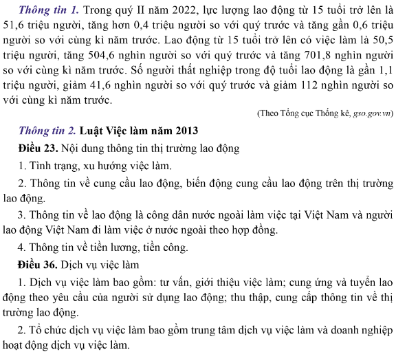 a. Đọc thông tin 1 và phân tích được tương quan giữa cung lao động và số lượng việc làm tại Việt Nam trong quý II năm 2022.