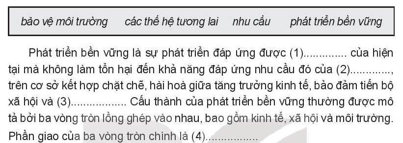 Đọc lại thông tin về khái niệm phát triển bền vững và sơ đồ hình 40 SGK trang 111 => chọn đáp án không đúng