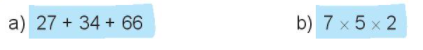b) 7 x 5 x 2 = 7 x (5 x 2)