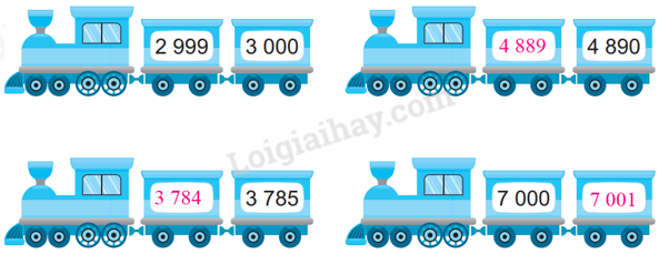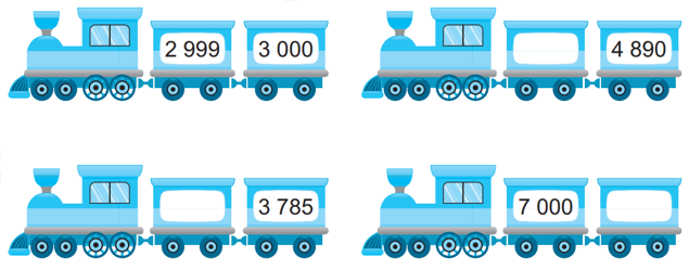 Viết số thích hợp vào toa tàu còn trống (theo mẫu).