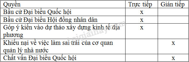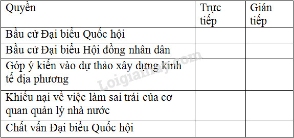 Trong các hình thức thực hiện quyển quản lí nhà nước sau đây, hình thức nào là trực tiếp, gián tiếp.
