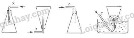 Các chất khí được thu vào bình theo đúng nguyên tắc bằng cách đẩy không khí (X, Y, Z) và đẩy nước (T) như