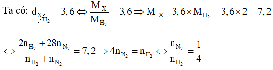 Tìm tỉ lệ mol của N2 và H2 thông qua tỉ khối.