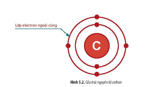 2. Quan sát Hình 5.2 và cho biết cấu trúc của nguyên tử carbon có đặc điểm gì giúp nó trở thành nguyên tố có vai trò quan trọng trong tế bào.