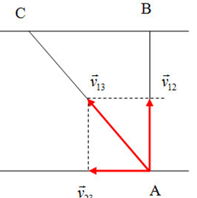 \(\left\{ \begin{array}{l}{v_{13}} = \dfrac{{AC}}{t} = \dfrac{{\sqrt {A{B^2} + B{C^2}} }}{{60}} = 5m/s\\{v_{12}} = {v_{13}}.c{\rm{os}}\alpha  = {v_{13}}\dfrac{{AB}}{{AC}} = 4m/s\end{array} \right.\)