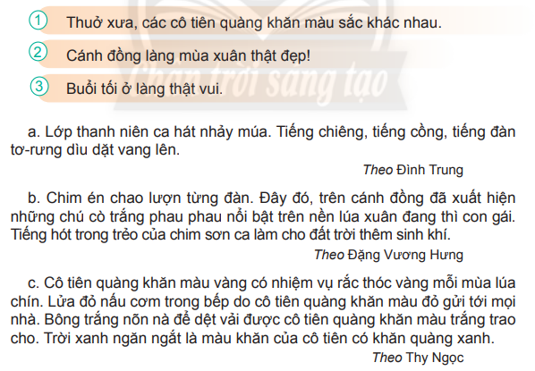 c. Câu chủ đề: Thuở xưa, các cô tiên quàng khăn màu sắc khác nhau