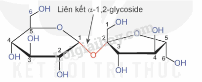 – Saccharose không còn nhóm –OH hemiacetal tự do nên không thể chuyển thành dạng mạch hở chứa nhóm aldehyde (-CHO), do đó saccharose chỉ tồn tại ở dạng mạch vòng.
