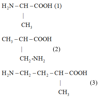 : 3 – amino – 3 – methylpropanoic acid: thuộc \(\beta \)- amino acid vì nhóm – NH2 liên kết với nguyên tử carbon số 3