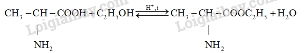 Cho alanine tác dụng với ethanol khi có acid vô cơ mạnh làm xúc tác để tạo thành ester. Viết phương trình hóa học của phản ứng tạo thành ester (giả thiết ester tồn tại ở dạng tự do, không tạo muối với acid vô cơ).