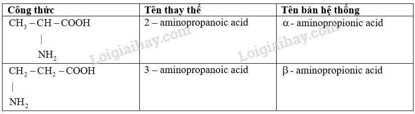 Viết công thức cấu tạo của các amino acid có cùng công thức phân tử C3H7NO2. Gọi tên các amino acid trên theo danh pháp thay thế và danh pháp bán hệ thống