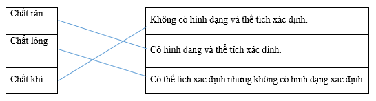 Hãy điền vào chỗ trống các từ/cụm từ thích hợp: chất rắn có hình dạng cố định; chất lỏng có thể rót được và chảy trên bề mặt.
