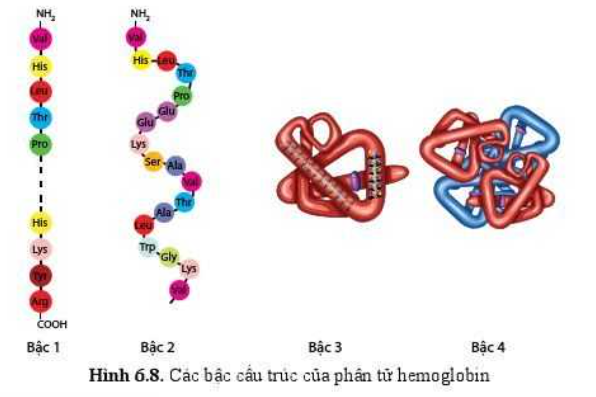 Cấu trúc các bậc của phân tử hemoglobin: