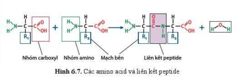 Dựa vào hình 6.7, nêu các nguyên tố chính cấu tạo nên phân tử amino acid