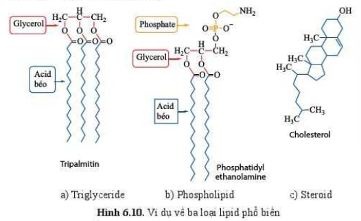 Các Lipid trong ảnh 6.10 được cấu tạo từ những nguyên tố chính là C, H, O.