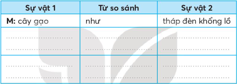 a. Tìm những sự vật được so sánh với nhau và ghi kết quả vào bảng sau: