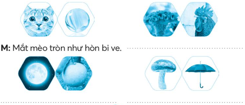 Quan sát tranh, tìm những sự vật có đặc điểm giống nhau (hình dạng, màu sắc,…). Đặt câu so sánh các sự vật đó với nhau.