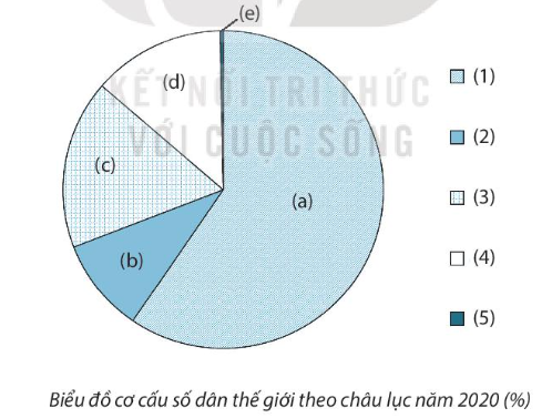 Dựa vào biểu đồ tròn thể hiện cơ cấu số dân thế giới theo châu lục năm 2020 (%) ta thấy số dân của châu Á chiếm tỉ lệ lớn nhất đạt 59,5% đông nhất trong các châu lục của thế giới.