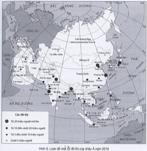 b) Hãy nhận xét và giải thích về sự phân bố của các đô thị ở châu Á