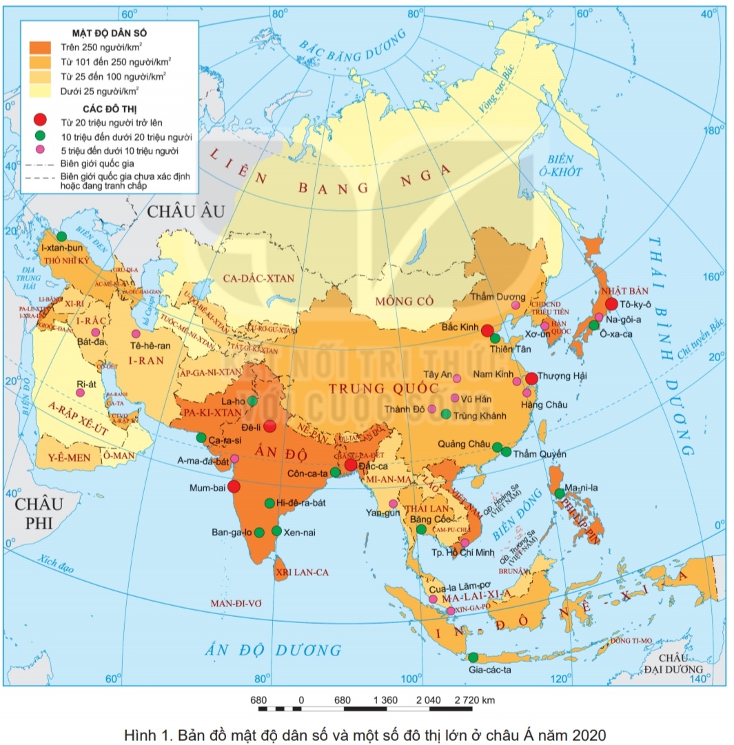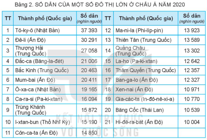 – Xác định vị trí các đô thị từ 20 triệu người trở lên ở châu Á.